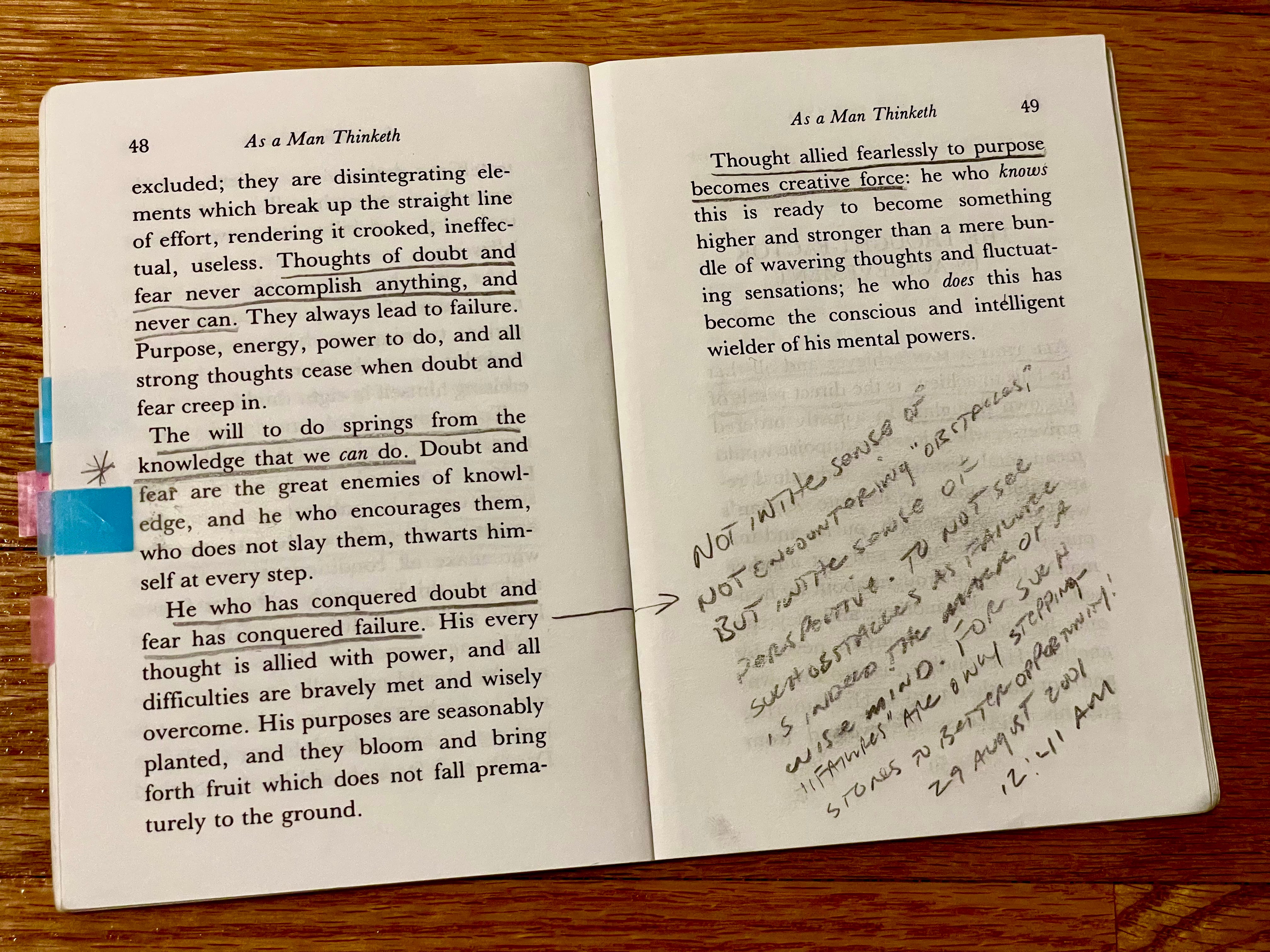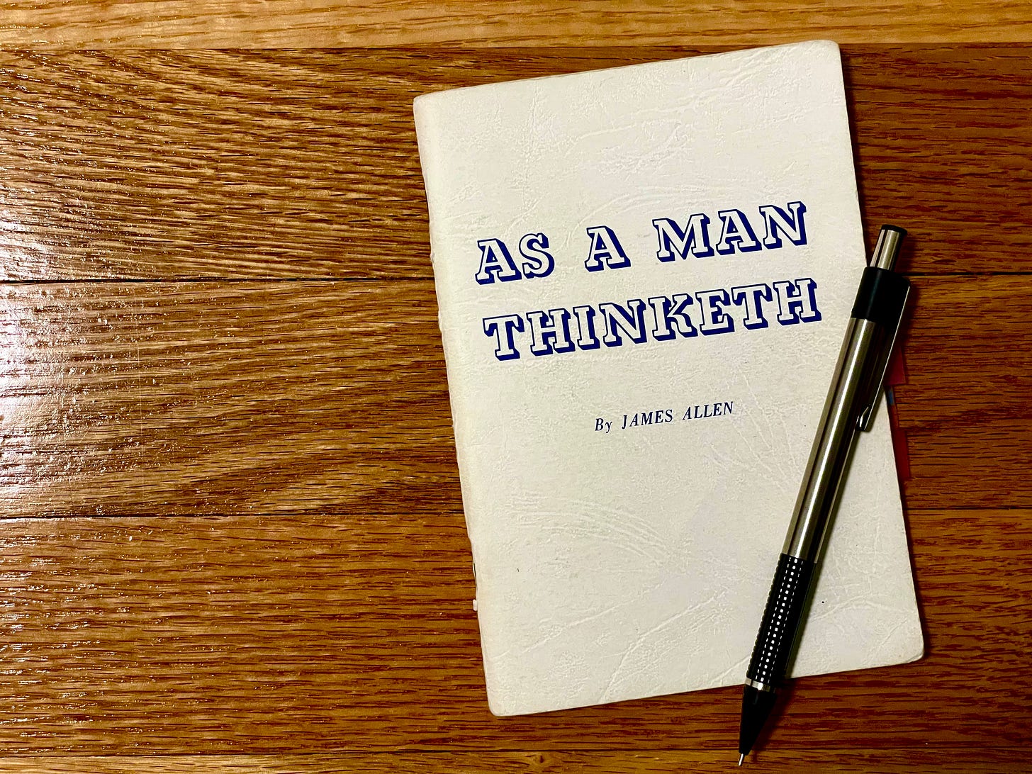 Before the house settled for the night and just after dinner dishes were cleaned, we read a few pages from As a Man Thinketh. The book itself is small—barely more than a pamphlet—but its sentences carry the kind of clarity that invites reflection long after the page is read.