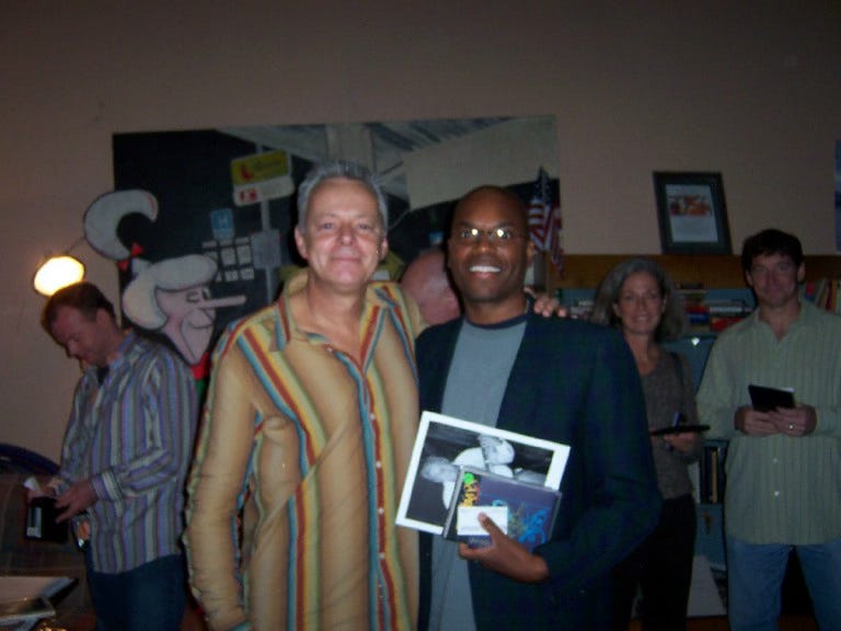 The next day, I visited his website forum to share the experience. Several audience members replied, noting that they had also shed tears. One woman shared that she and her husband, seated behind me, were the ones who touched my shoulder as the moment washed over us all—a shared human coherence, a collective slicing of proverbial onions, if you will. I later realised they are the couple standing behind Tommy and me in the photograph.