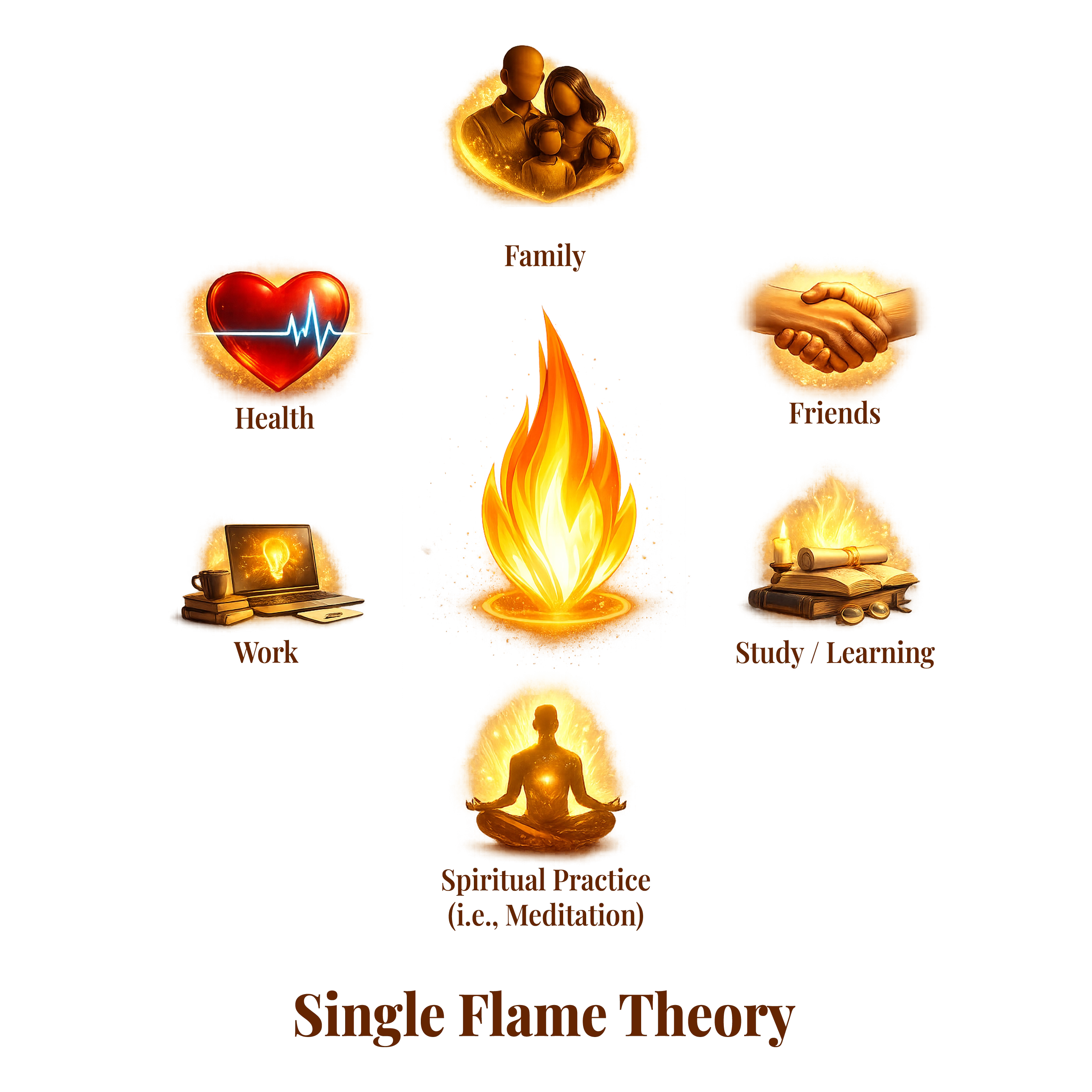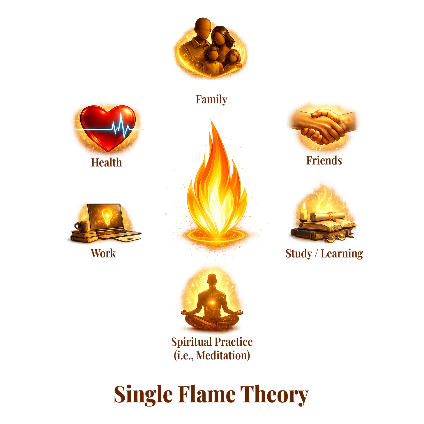Where the Four Burner Theory imagines four competing burners drawing from a finite supply, Single Flame Theory imagines a central flame expressing itself through multiple domains.