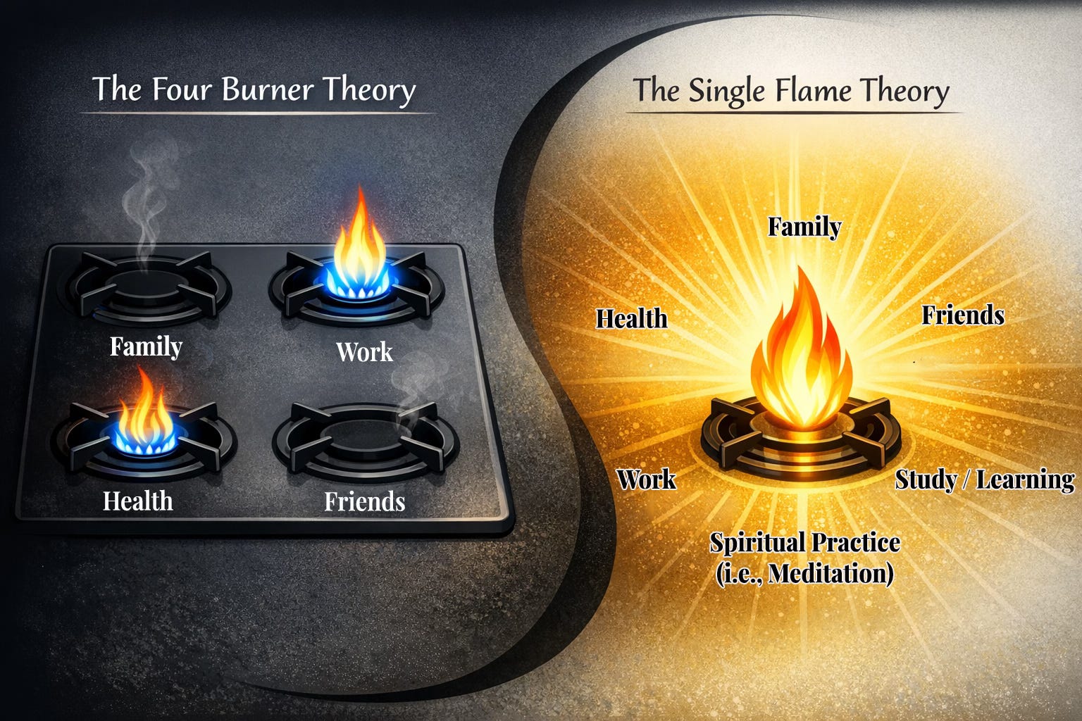 This reflection arose not from opposition to the Four Burner Theory, but from curiosity about its underlying premise. Over the years, I have observed how easily culturally specific narratives become internalised as universal truths. The Four Burner metaphor carries pragmatic wisdom in certain contexts, yet it also reflects a deeper assumption about scarcity, fragmentation, and the inevitability of tradeoff.